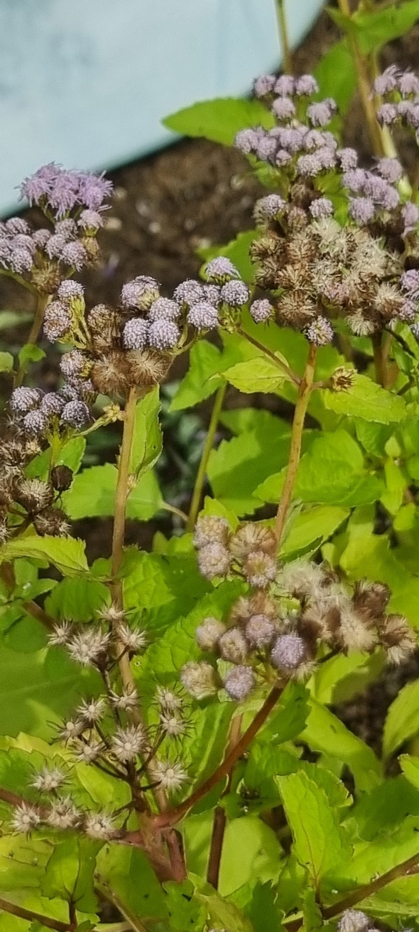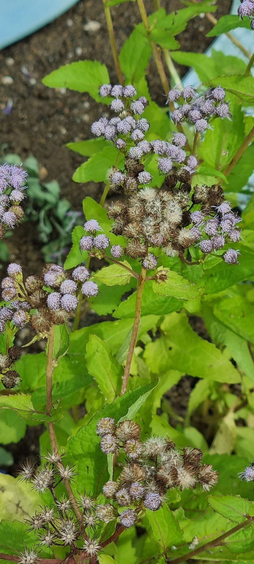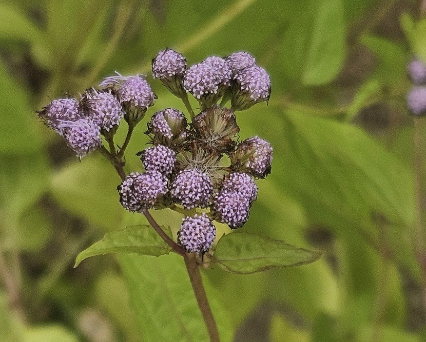 25.10.24 604 읽음 코노클리니움_코일레스티눔(코일레스티눔등골나물) 1027kko 구독하기 25 31 콘텐츠의 수익 10 북미 원산 국화과 등골나물속 여러해살이풀입니다. '블루미스트플라워, 코일레스티눔등골나물, 보라등골나물, 숙근아게라텀'이라고도 한답니다. 꽃은 여름부터 가을까지 계속 피며 산방꽃차례에 많은 두상화(頭狀花)가 달립니다. 통상화는 길이 5~6mm의 실 모양으로 빽빽하며 푸른색 또는 보라색이고 설상화는 없습니다. 높이 90cm까지 자라며 줄기는 붉은색이고 잎은 마주나기하고 삼각형이며 가장자리에 둔한 톱니가 있습니다. 31 0 / 300 입력