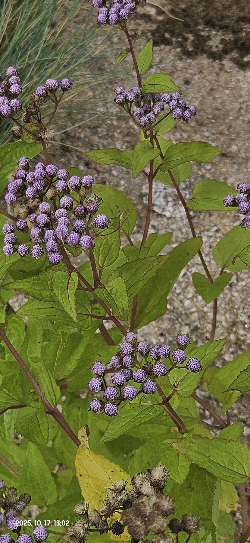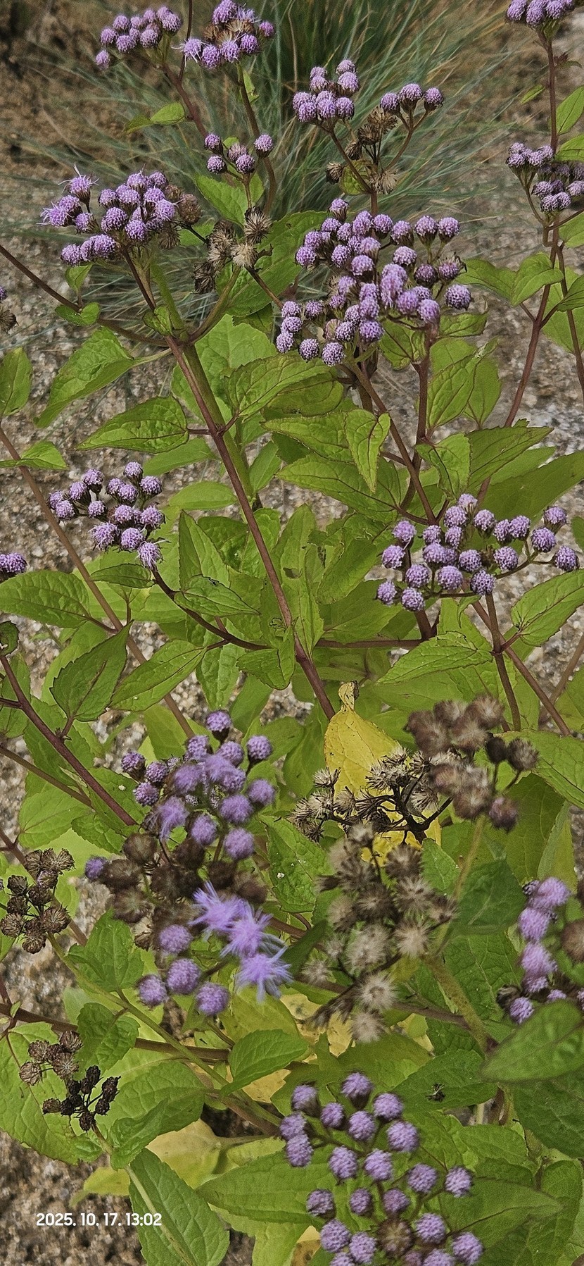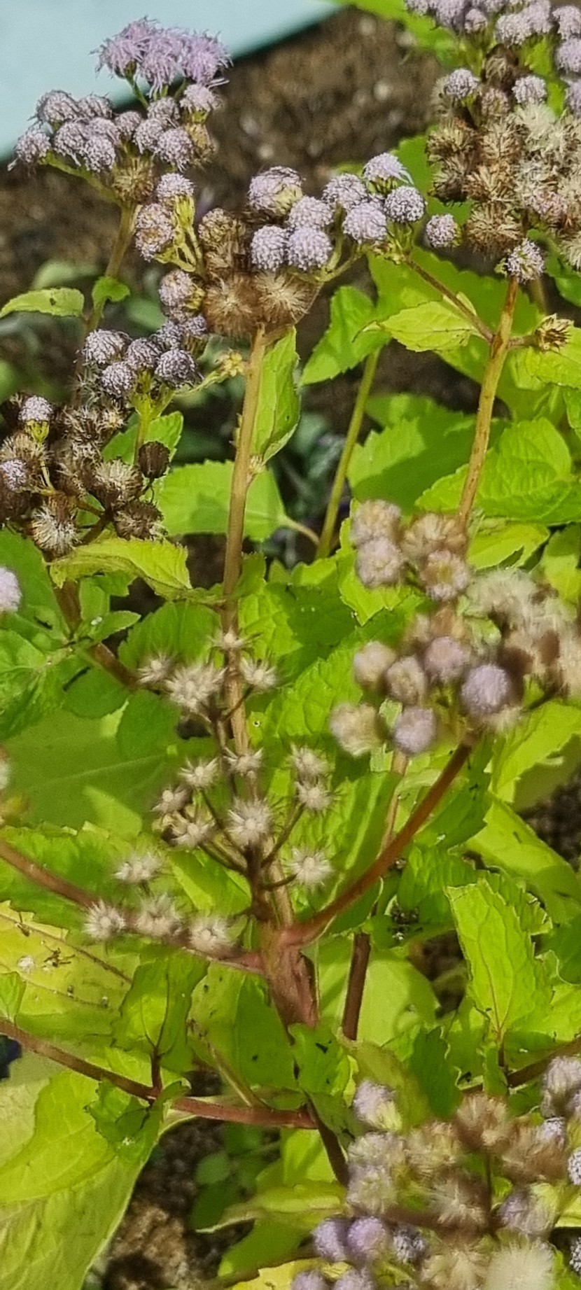 25.10.24 604 읽음 코노클리니움_코일레스티눔(코일레스티눔등골나물) 1027kko 구독하기 25 31 콘텐츠의 수익 10 북미 원산 국화과 등골나물속 여러해살이풀입니다. '블루미스트플라워, 코일레스티눔등골나물, 보라등골나물, 숙근아게라텀'이라고도 한답니다. 꽃은 여름부터 가을까지 계속 피며 산방꽃차례에 많은 두상화(頭狀花)가 달립니다. 통상화는 길이 5~6mm의 실 모양으로 빽빽하며 푸른색 또는 보라색이고 설상화는 없습니다. 높이 90cm까지 자라며 줄기는 붉은색이고 잎은 마주나기하고 삼각형이며 가장자리에 둔한 톱니가 있습니다. 31 0 / 300 입력
