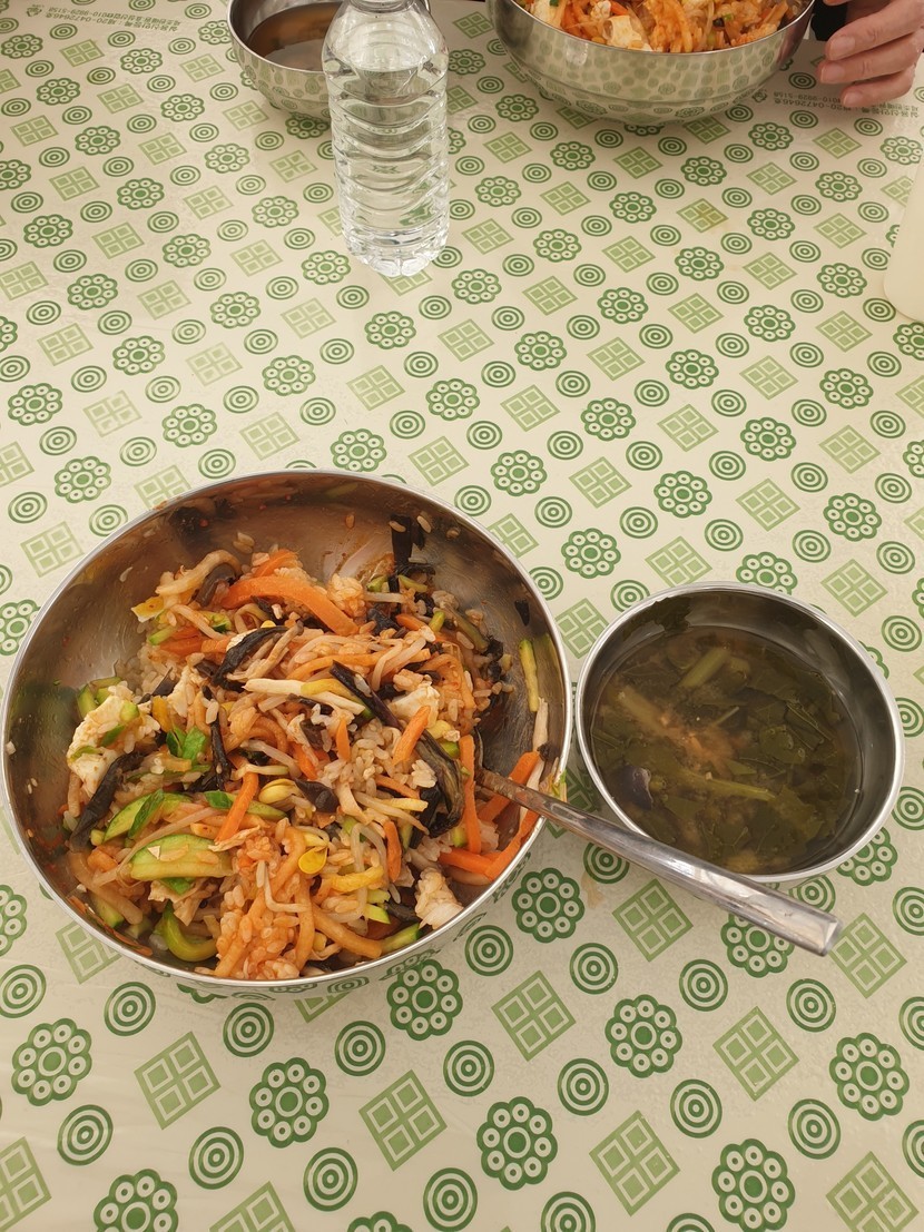 4000원 비빔밥 리필해서 두 번 먹고 고구마 받으러 또 줄 서 봅니다.