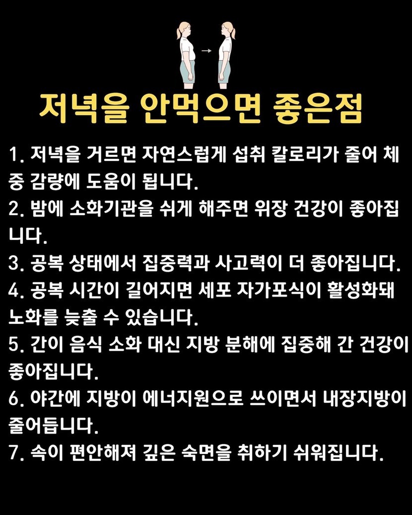 저녁을 안먹으면 좋은점이라네요(펌)
