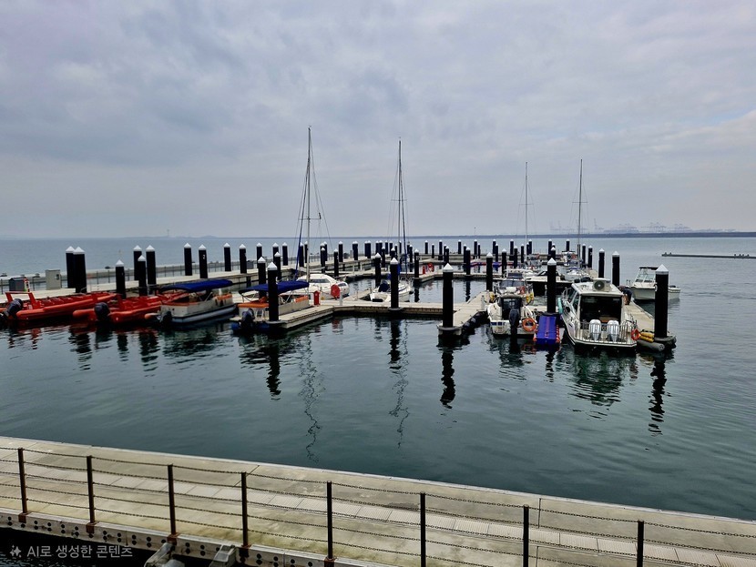 요트 몇대 정박해 있네요