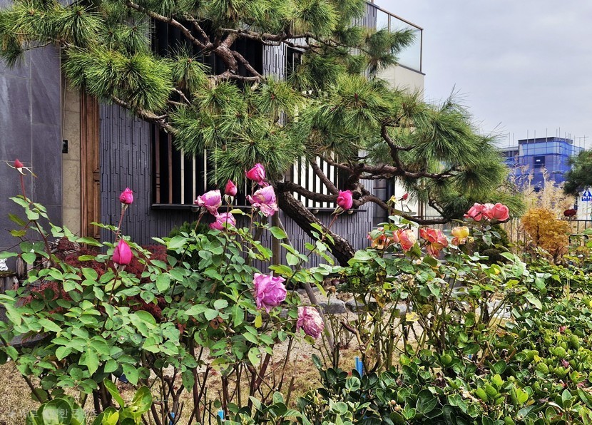 주택가에 장미가 피고 또 지고있어요