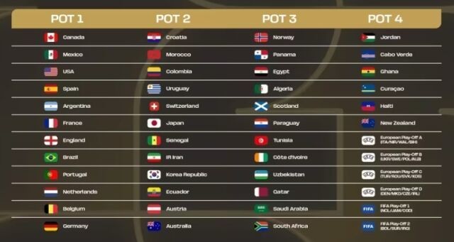 국제축구연맹(FIFA)은 오는 6일 오전(한국시간) 미국 워싱턴 DC 케네디센터에서 2026 북중미월드컵 본선 조추첨을 진행한다. 한국은 2026 북중미월드컵에서 포트2에 배정된 가운데 조추첨 결과가 주목받고 있다. FIFA는 2026 북중미월드컵 본선 조추첨 포트를 FIFA 랭킹을 기준으로 배정했고 한국은 사상 처음으로 월드컵 본선 조추첨에서 포트2에 포함됐다.