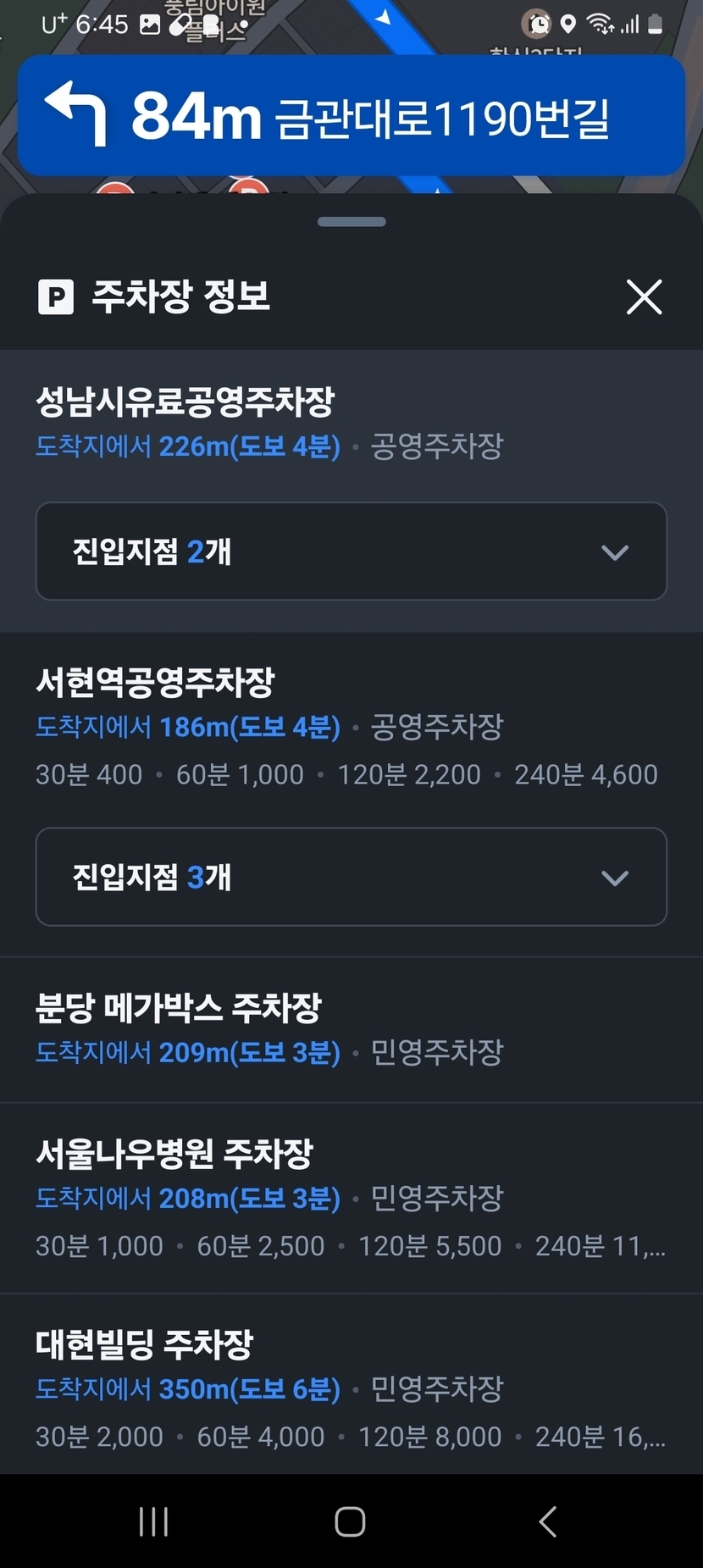 주차장 찾기 오류