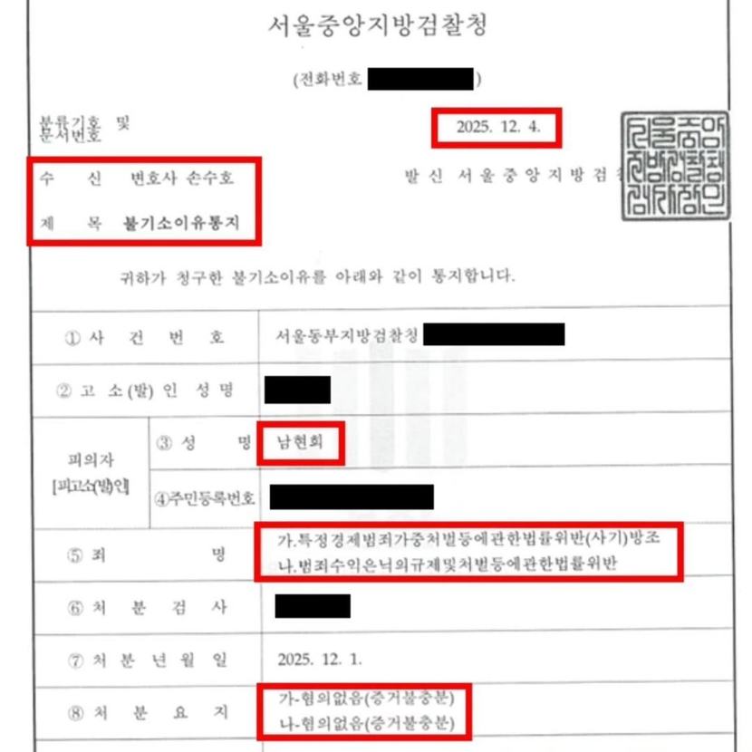 법무법인 지혁의 손수호 변호사도 같은 날 자신의 SNS를 통해 남현희 사건에 대한 검찰의 불기소 결정서를 공개하며, "혐의 없음의 이유가 다시 한번 명확히 확인됐다"고 밝혔다.