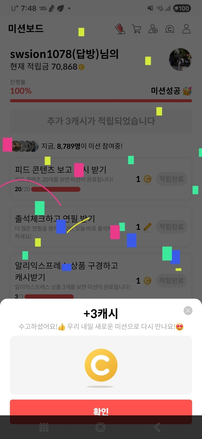 1일 전 121 읽음 랜덤캐시,미션보드 미션완료!! swsion1078(답방) 구독하기 19 22 콘텐츠의 수익 6 12월15일 랜덤캐시 미션완료 5캐시, 미션보드 미션완료 3캐시, 타로카드는 2캐시, 비디오시청은 2캐시 받았어요. 22 0 / 300 입력