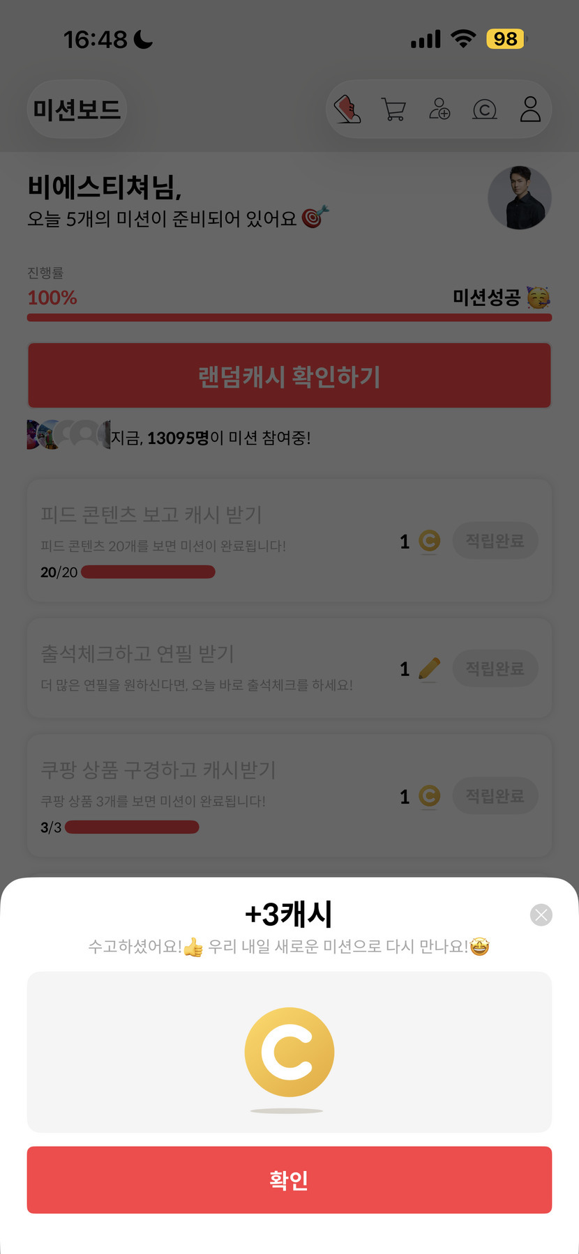 1일 전 97 읽음 12월 16일 캐시피드 미션 완료 비에스티쳐 구독하기 9 8 콘텐츠의 수익 5 오늘은 안타깝게도 나쁜 친구 3캐시를 피하지 못했습니다.내일은 캐시 많이 받을수 있었으면 좋겠습니다.기온 내려가는데 건강 조심하시고 해피한 오후 보내세요:) 8 0 / 300 입력