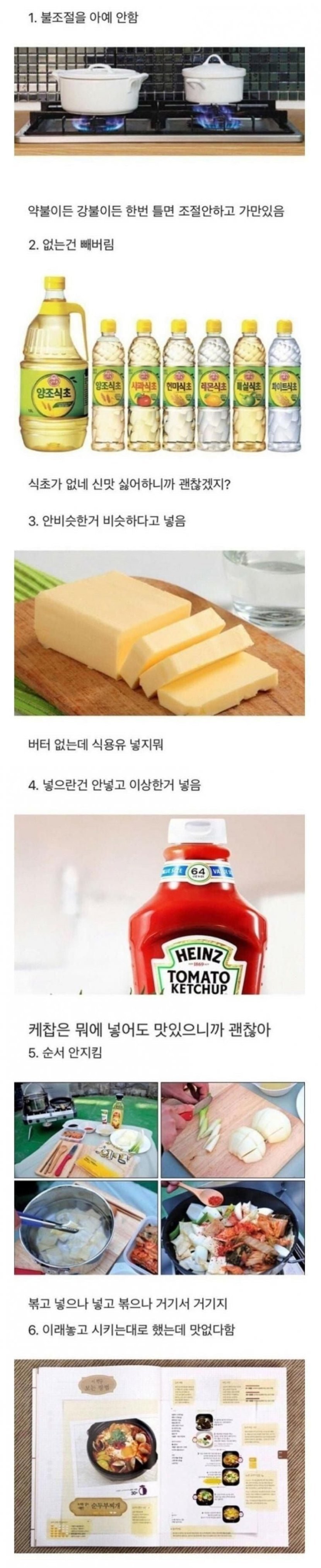 요리 못하는 사람들 특징