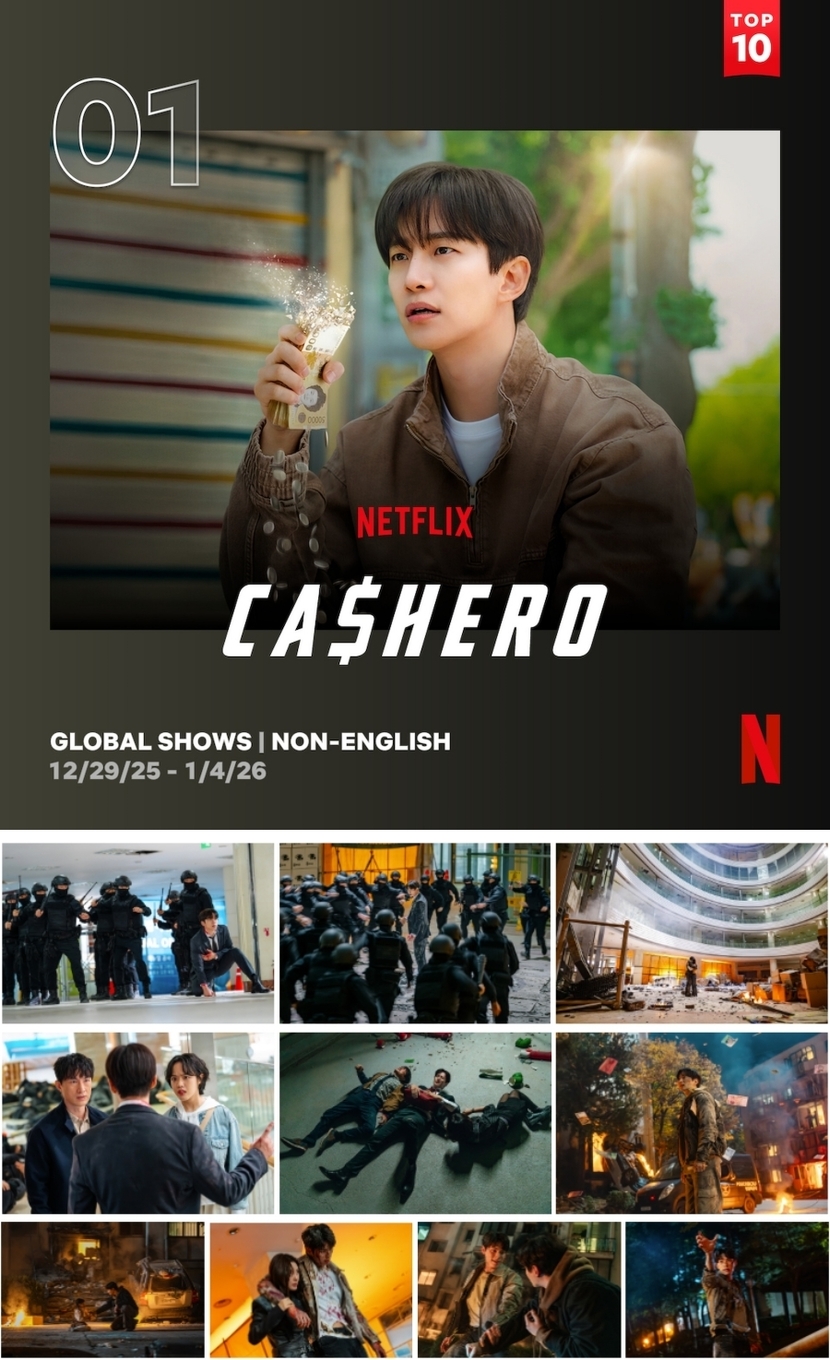 결혼자금, 집값에 허덕이는 월급쟁이 '상웅'이 손에 쥔 돈만큼 힘이 강해지는 능력을 얻게 되며, 생활비와 초능력 사이에서 흔들리는 생활밀착형 내돈내힘 히어로물 '캐셔로'가 공개 2주차에 글로벌 TOP 10 비영어 쇼 1위에 올랐다. '캐셔로'는 6,100,000 시청수(시청 시간을 작품의 총 러닝타임으로 나눈 값)를 기록하며 총 51개 국가에서 TOP 10 리스트에 이름을 올려 식지 않는 인기를 실감케 한다.