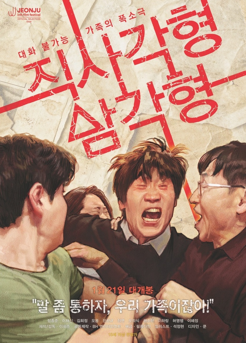 웃음과 파국이 맞붙는 순간, 가장 가까운 관계의 일상은 예측 불가능한 소동으로 치닫는다. ‘직사각형, 삼각형’은 누구나 공감할 수 있는 현실적인 갈등을 위트 있게 풀어내며, 올 초 극장가에 색다른 웃음과 공감을 선사할 예정이다.