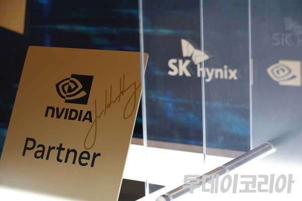 특히 HBM 전시 공간 옆에는 엔비디아와의 협력 관계를 상징하는 전시물도 함께 배치됐다.