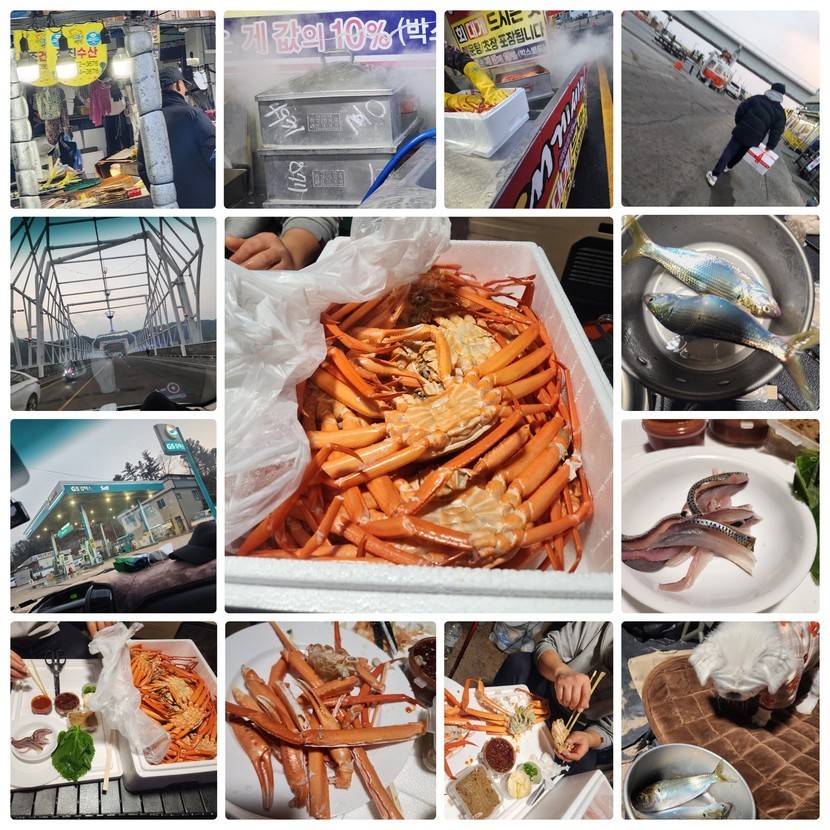 동광어시장🦀난전홍게🫓호떡🌅일출🍗닭갈비🪧속리산🍜라면🐟신포명태