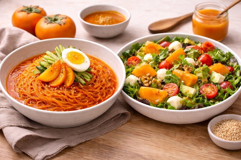 홍시가 가진 풍부한 천연 당분이 인위적인 설탕의 단맛을 대체하면서도 요리의 감칠맛을 자연스럽게 끌어올리는 역할을 수행하기 때문이다. 이러한 특성을 살려 샐러드 드레싱이나 육류 요리의 소스 등 다양한 조리법에 접목되는 추세다. 개중에서도 매콤하고 새콤한 양념장에 홍시를 넣어 달콤함까지 더한 '홍시 비빔국수'는 겨울철 입맛을 돋우는 별미로 주목받고 있다.