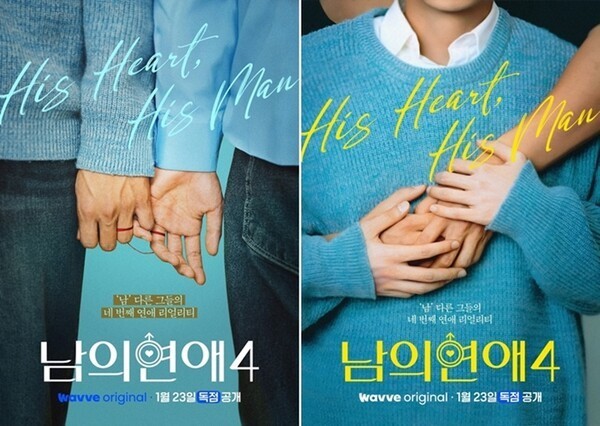 남자들의 특별한 사랑 이야기를 담아내는 ‘남의연애 시즌4’는 오는 1월 23일부터 매주 금요일마다 2회차씩 웨이브 오리지널 콘텐츠로 독점 공개된다.
