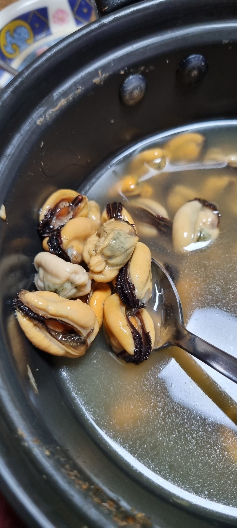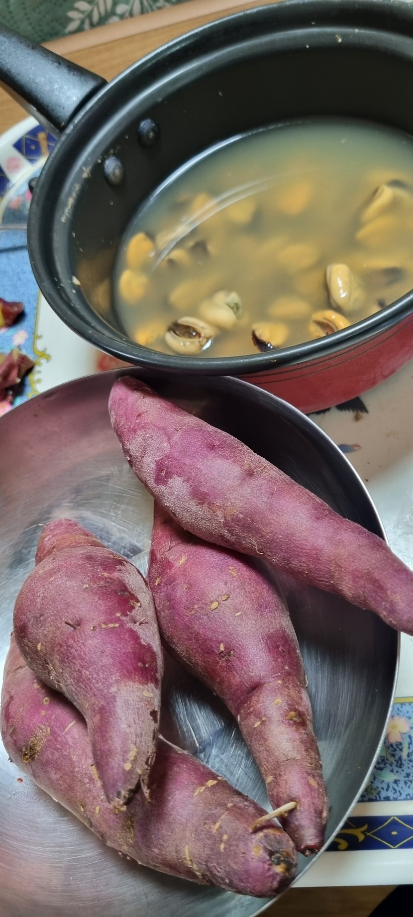 오후 간식; 고구마, 홍합탕