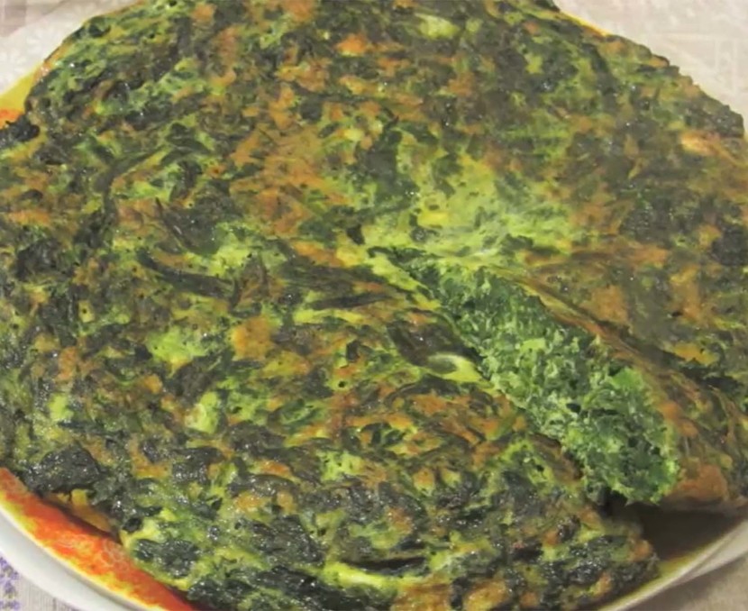 시금치는 생으로 넣으면 부피가 크지만 익으면 크게 줄어든다. 따라서 생각보다 많은 양을 넣어도 괜찮다. 시금치를 대량으로 소비하고 싶을 때 프리타타만큼 좋은 요리도 드물다. 시금치가 완전히 숨이 죽으면 소금과 후추로 간을 한다.