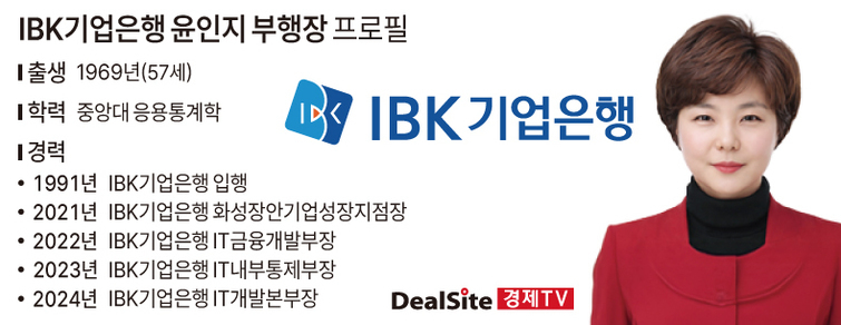 1969년생인 윤 부행장은 35년 경력의 내부 IT 전문가다. 1991년 IBK기업은행에 입행해 IT금융개발부장, IT내부통제부장, IT개발본부장 등을 거쳤다. 시스템 개발·내부 통제·인프라 운영을 두루 경험한 인물로 평가받는다.