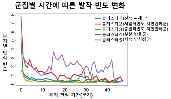 반면 발작 지속군에서는 서로 다른 양상이 나타났다. ‘부분 반응군’에서는 국소 극서파나 불규칙 서파와 같은 국소적 뇌파 이상과 뇌종양이 연관된 경우가 많았고, ‘지속 난치성군’에서는 해마경화증이 동반된 환자가 많았으며, 남성 환자와 긴 이환 기간이 특징적으로 관찰됐다.