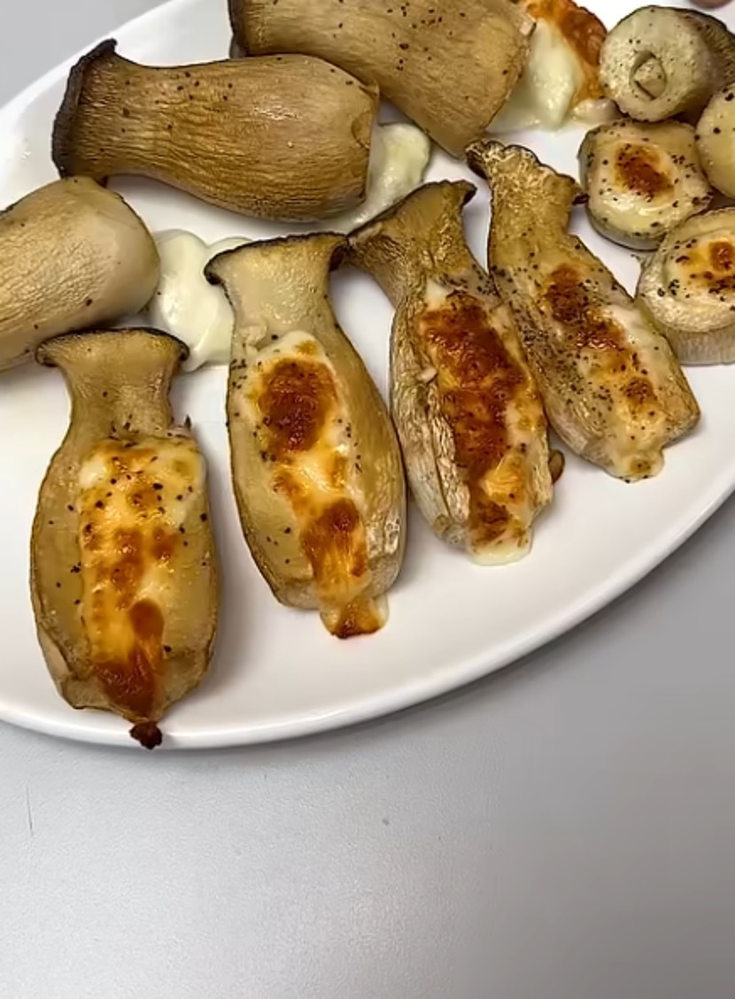 레시피는 다음과 같다. 먼저 밑동을 자른 새송이버섯에 두꺼운 빨대를 쭈욱 넣어서 구멍을 만든다. 이후 구멍에 맞게 피자치즈를 넣거나, 혹은 시중에 판매하는 긴 모양의 스트링 치즈를 끼워 넣으면 딱 알맞는다. 이후 소금, 후추, 올리브유를 차례로 기호에 맞게 뿌려 준다.