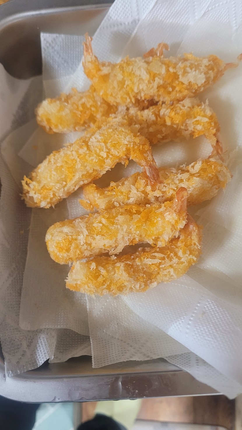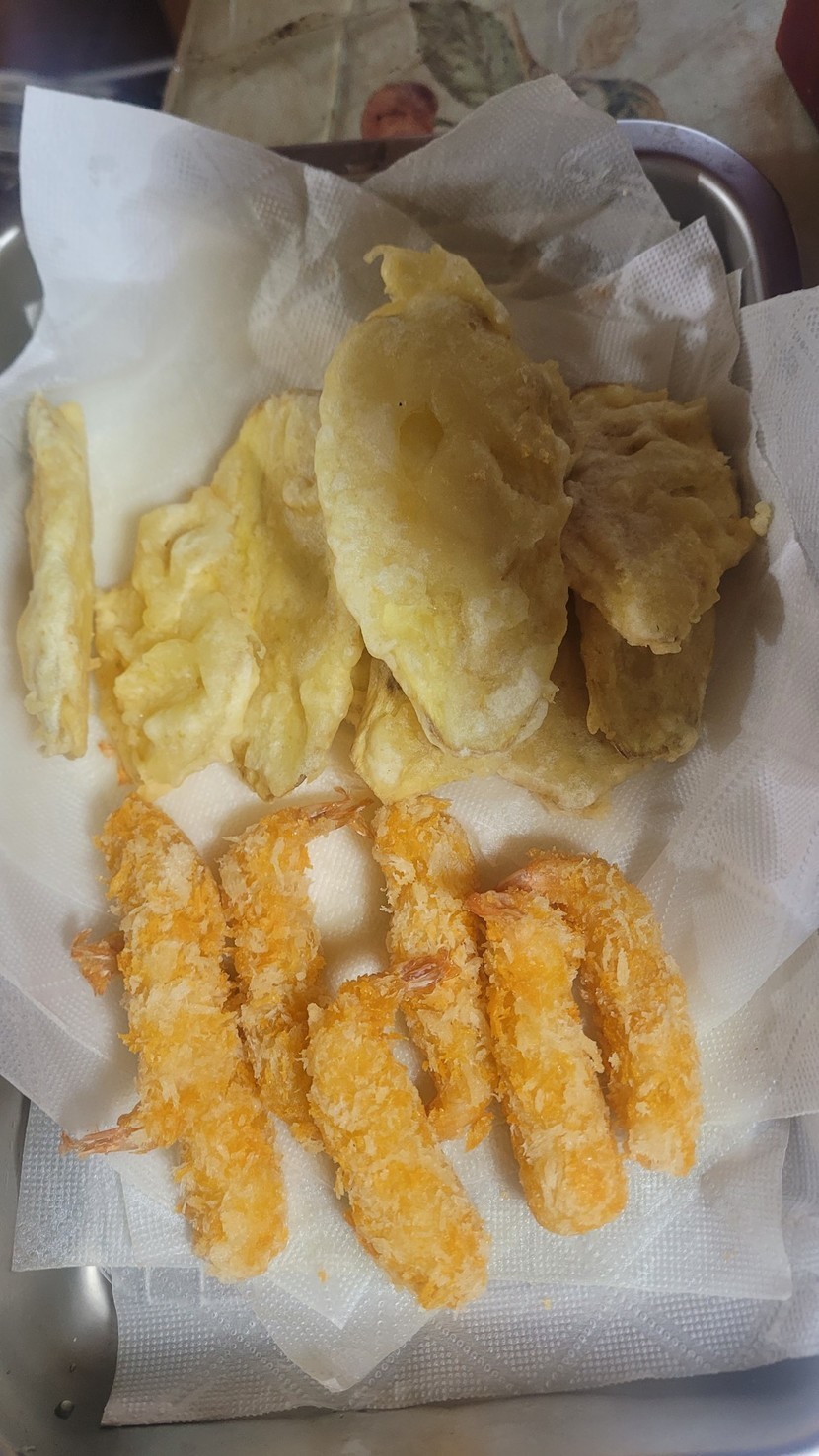 어제저녁에 새우튀김과 고구마