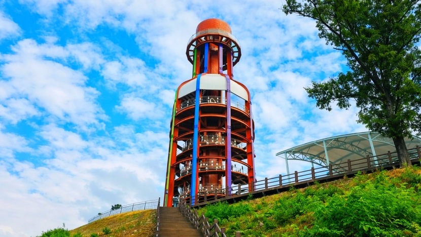충북 영동군 영동읍 영동힐링로에 자리한 전망대는 영동의 상징인 와인잔을 형상화한 독특한 곡선미가 특징이다. 밤이 되면 다채로운 LED 조명이 켜져 오묘한 분위기를 자아낸다. 약 20m 높이에서 영동천과 영동 시내 등 탁 트인 뷰를 감상할 수 있다.