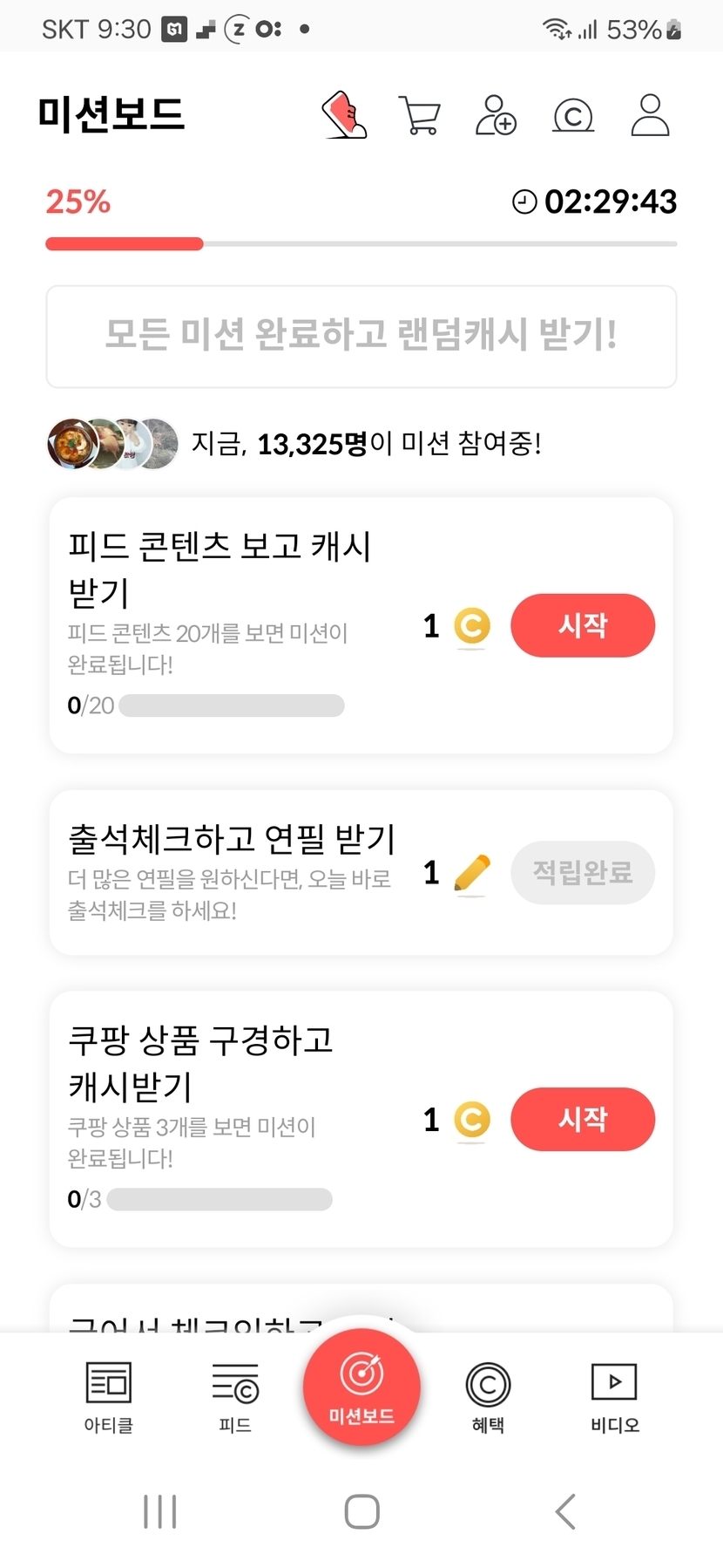 지금시각 21시31분 미션보드~미션 중 인증샷~~