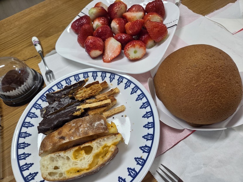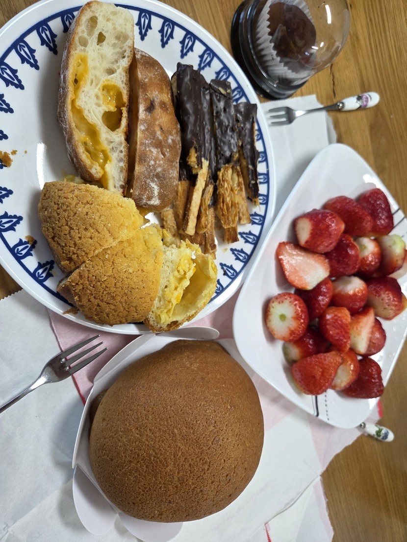 맛있는 빵들하고 딸기랑 즐거운 시간입니다~~