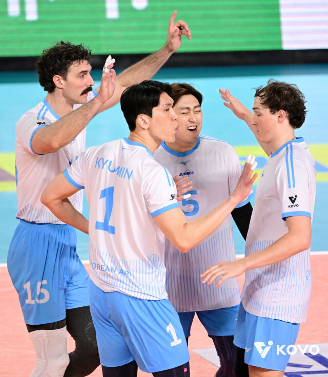 대한항공은 승점 63이 되면서 2위 현대캐피탈(승점 59)과의 간격을 4점으로 벌리며 선두를 질주했다.