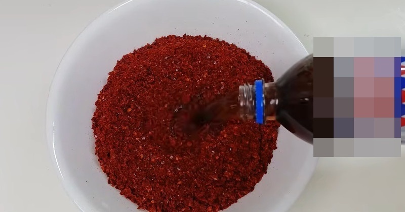 위키트리콜라 고추장의 출발점은 고춧가루다. 고운 고춧가루에 콜라를 먼저 부어 불리듯 섞는다. 이 과정이 중요한 이유는 고춧가루의 건조한 입자가 탄산과 수분을 머금으며 빠르게 퍼지기 때문이다. 콜라 속 탄산은 일시적으로 기포를 만들며 고춧가루 사이사이에 스며든다. 설탕이 이미 녹아 있는 상태라 별도의 당을 녹일 필요도 없다.