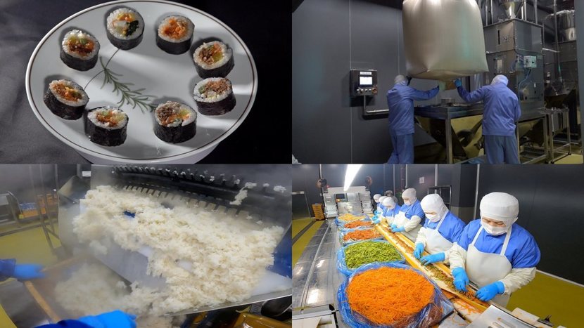 SNS를 통해 해외에 소개되며 세계를 강타한 냉동 김밥! 품절 대란이 일어날 정도로 인기를 얻으며 쌀 가공식품의 수출 효자 품목으로 자리 잡았다. 한입에 간편하게 즐길 수 있지만! 만드는 과정을 절대 간단하지 않다.