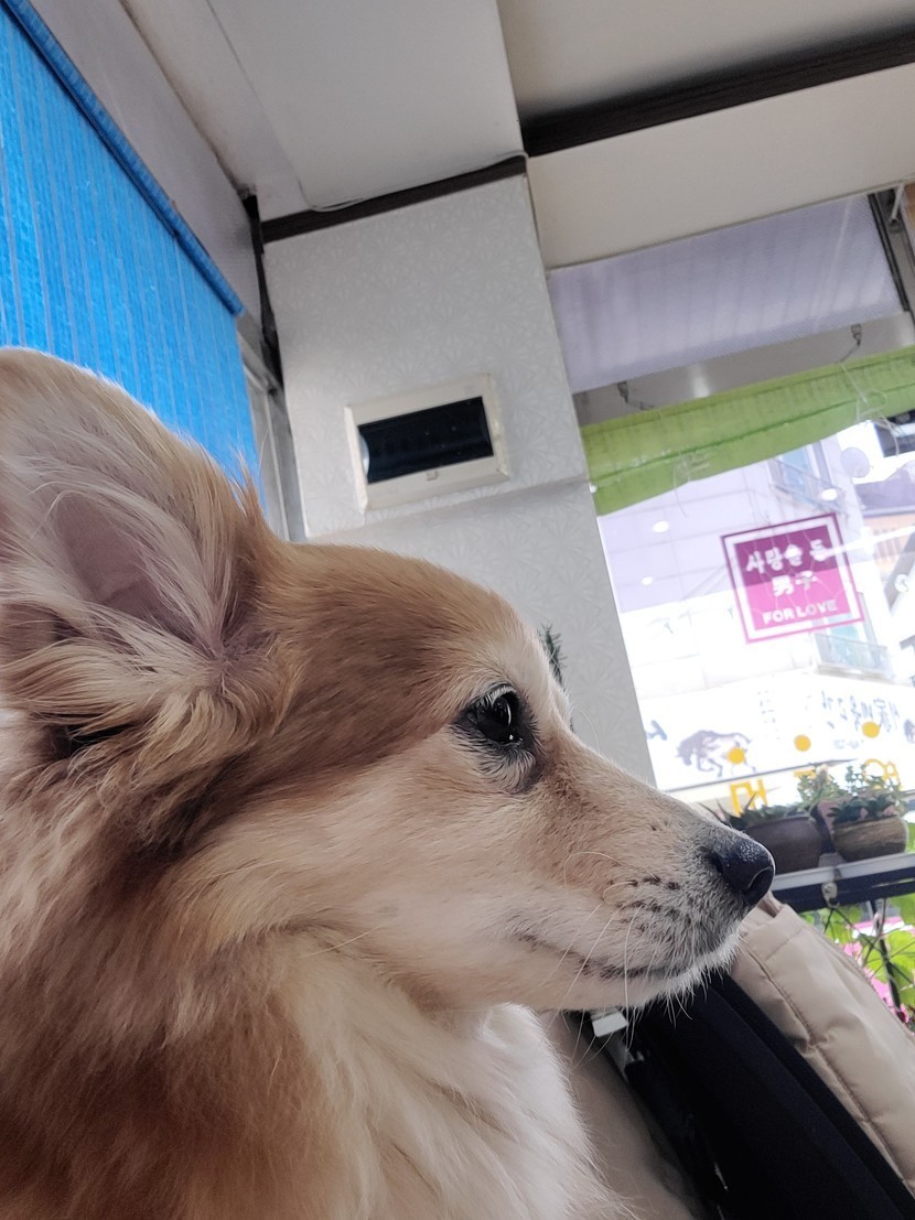 할미 커트하기 위해서 미용실에 갔는데..눈이 고정 되어있는 울 똘군😅