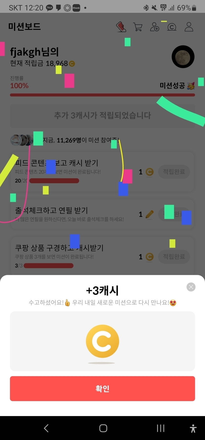 오늘 미션완료하고 3캐시네요ㅠㅠ