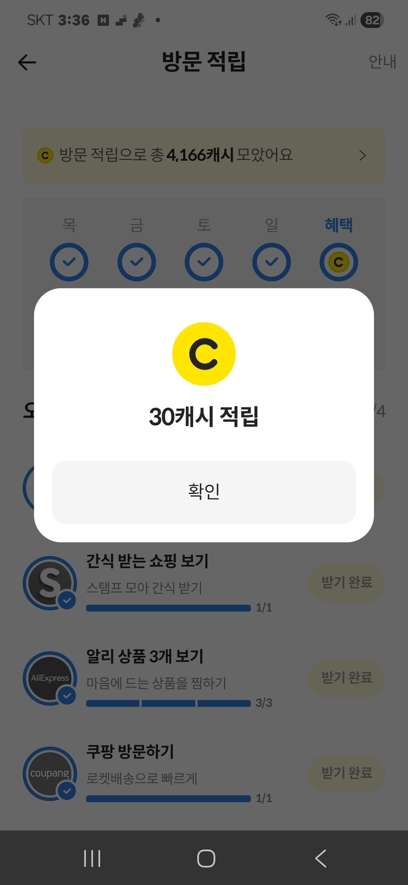 방문 개근 적립 처음이네요