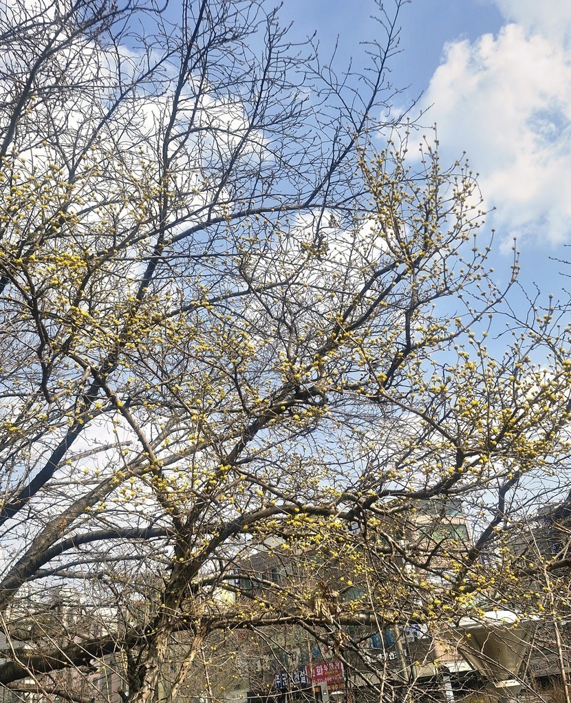 집에 오다보니 산수유 나무 제법 노랗게