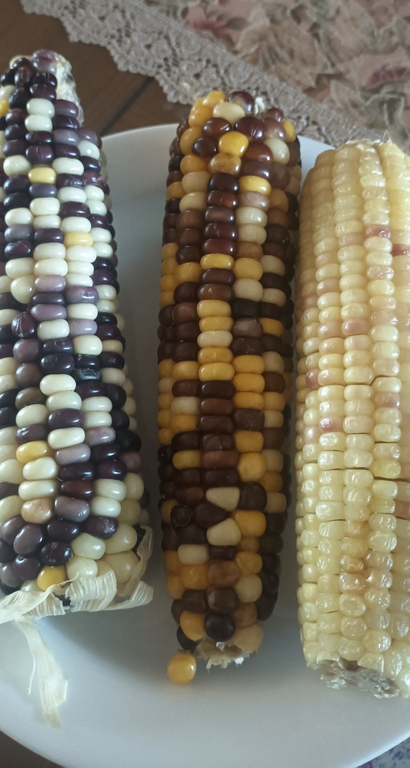 간식으로 삶은 옥수수먹기