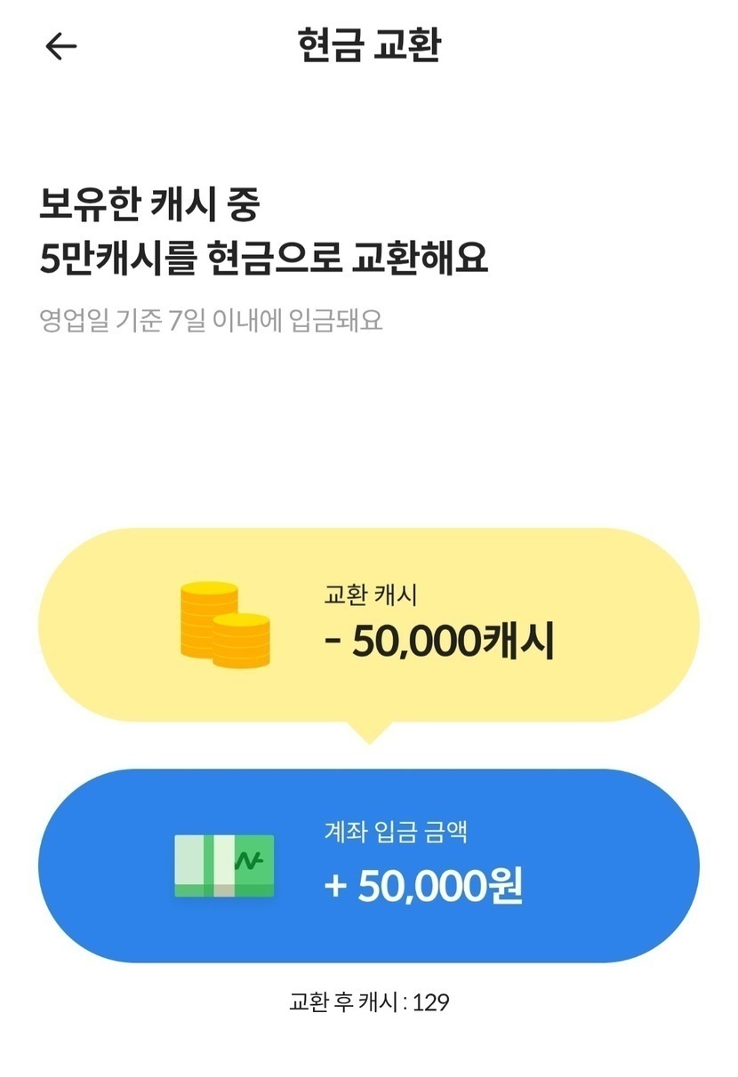 5만원 현금 교환 신청했어요