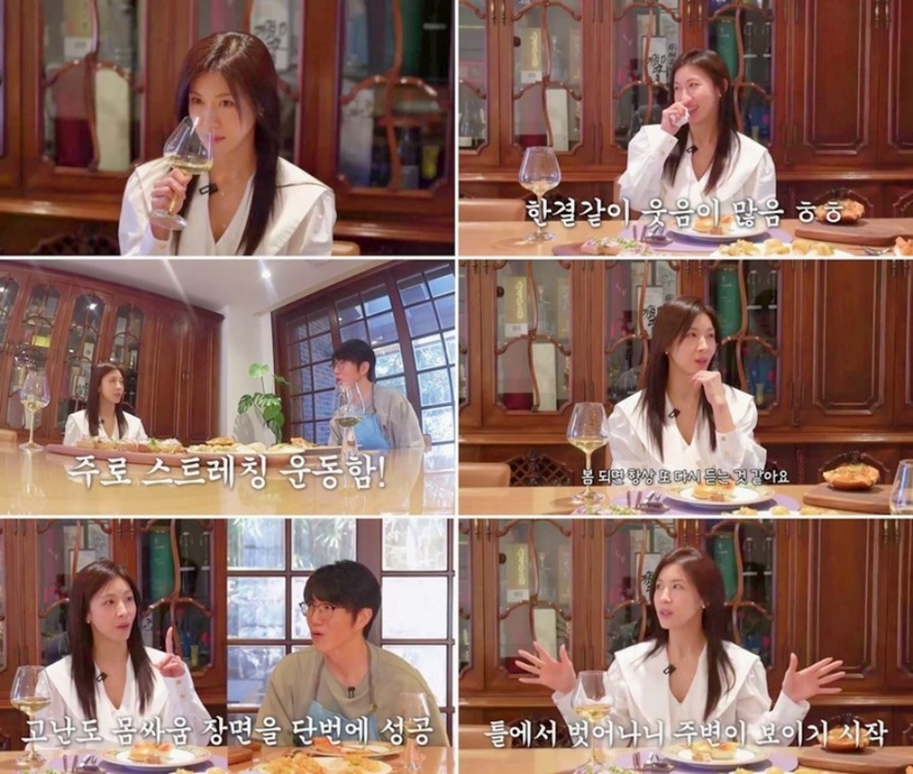 이어 몸매 관리 비결에 대해서는 “주변에서 어떤 운동을 하는지 많이 물어보신다”라며, “근육의 원리를 파악하며 스트레칭 운동에 집중한다. 자극이 필요한 포인트에 힘을 주고 내 몸과 대화를 나누는 것”이라고 전했다. “꾸준히 쌓아온 운동 공력 덕분에 운동을 효율적으로 잘하게 된 것 같다”라고 자신만의 노하우를 공개했다.