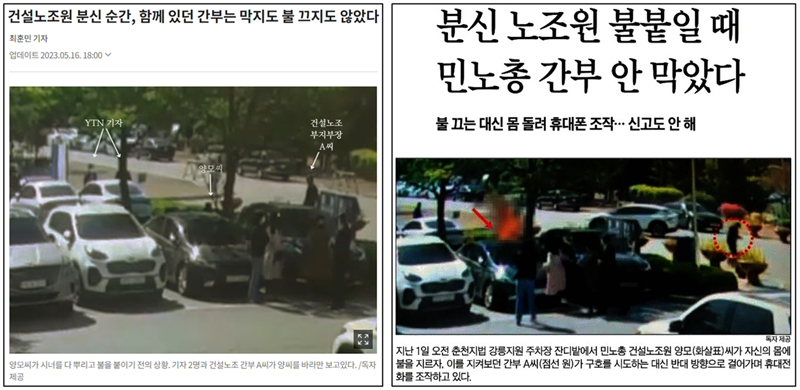 고인이 된 양씨는 노동절인 2023년 5월1일 자신의 구속영장실질심사를 앞두고 춘천지법 강릉지원 주차장에서 윤석열 당시 대통령 퇴진과 건폭몰이(건설업 폭력배) 중단을 요구하며 분신해 숨졌다. 2023년 5월1일 조선닷컴은 2023년 5월16일 「건설노조원 분신 순간, 함께 있던 간부는 막지도 불 끄지도 않았다」 기사에서 양씨가 분신을 시도할 당시 양씨의 상급자인 민주노총 건설노조 강원지부 부지부장인 A씨가 이를 말리지 않고 지켜만 봤다고 보도했다. 해당 기사는 조선일보 자회사인 조선NS 소속 기자가 작성했다.