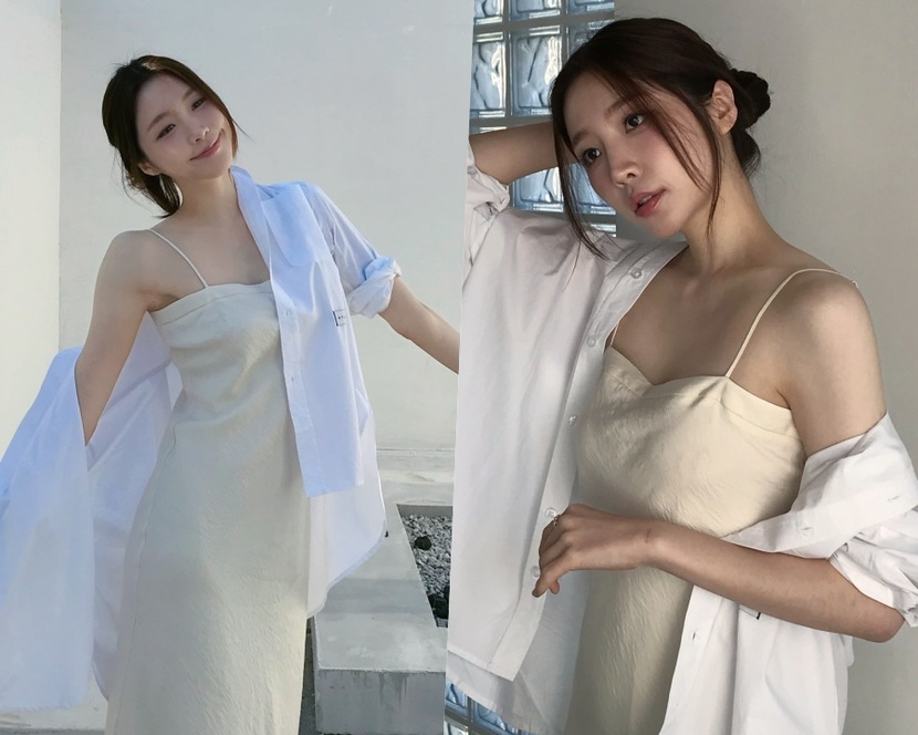 공개된 사진 속 성해은은 아이보리 컬러의 슬립 원피스에 화이트 셔츠를 가볍게 걸친 채 청순한 무드를 완성했다. 얇은 스트랩이 드러낸 어깨 라인과 자연스럽게 묶은 헤어가 더해지며 특유의 여리여리한 분위기가 극대화된다.