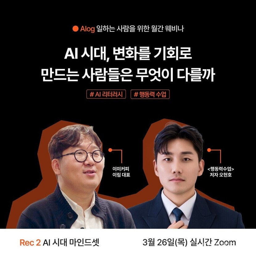 AIog 2회차 웨비나는 오는 3월 24일까지 무료로 신청할 수 있으며, AI 시대 일하는 방식 변화에 관심 있는 직장인과 기업 실무자라면 누구나 참여 가능하다.