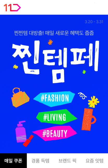 ◆11번가, 월 정기 프로모션 '찐템페스타' 진행11번가가 패션·뷰티·리빙 카테고리별 인기 아이템을 특가에 선보이는 월 정기 프로모션 '찐템페스타'를 20일부터 31일까지 진행한다. 이번 행사에서는 총 470만여개의 할인 상품을 선보이며, 봄 트렌드인 미니멀리즘 패션을 반영해 온앤온·올젠·게스·쉬즈미스 등 클래식한 디자인의 패션 제품을 할인 판매한다. 뷰티 카테고리에서는 정샘물·우르오스·클리오·프리메라 등 인기 브랜드가 참여해 베스트셀러를 특가에 내놓으며, 인기 뷰티 브랜드와 협업한 11번가 단독 기획세트를 2만원 균일가에 선보이는 '럭키박스' 코너도 운영한다. 리빙 카테고리에서는 한샘·우아미가구·양키캔들 등 인기 브랜드 할인과 함께 침구류·나들이용품·홈 프레그런스·수납용품 등 봄철 수요가 높은 리빙용품을 망라해 특가에 선보인다. 행사 기간 패션·뷰티·리빙 카테고리 대상 3000원 할인 장바구니 쿠폰을 매일 1장씩 발급하며, 뷰티·리빙 전용 추가 할인 쿠폰 등 다채로운 혜택도 제공한다. 응모만 해도 최대 200만원 이상 상당의 명품 가방을 받을 수 있는 경품 이벤트도 같은 기간 진행한다.