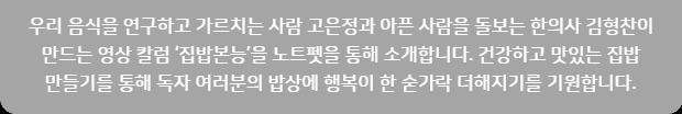 2시간 전 17 읽음 제철 꼬막 손질 및 데치기, 양념 조리 비법 노트펫 0 0 [고은정-김형찬의 '집밥본능'] 이런 꼬막 처음이에요!어릴적 온가족이 둘러 앉아 한소쿠리의 꼬막을 까먹고 나면 입에서 바다 향기가 나곤 했지요. 제철음식학교의 든든한 허리 이영란 선생님이 꼬막을 맛있게 데치는 법부터 정갈한 맛을 살리는 법 그리고 까는 방법까지 하나하나 놓치지 않고 알려드립니다. 영란샘이 알려주시는 방법대로 제철 꼬막을 맛있게 즐겨 보세요! 0 0 / 300 입력