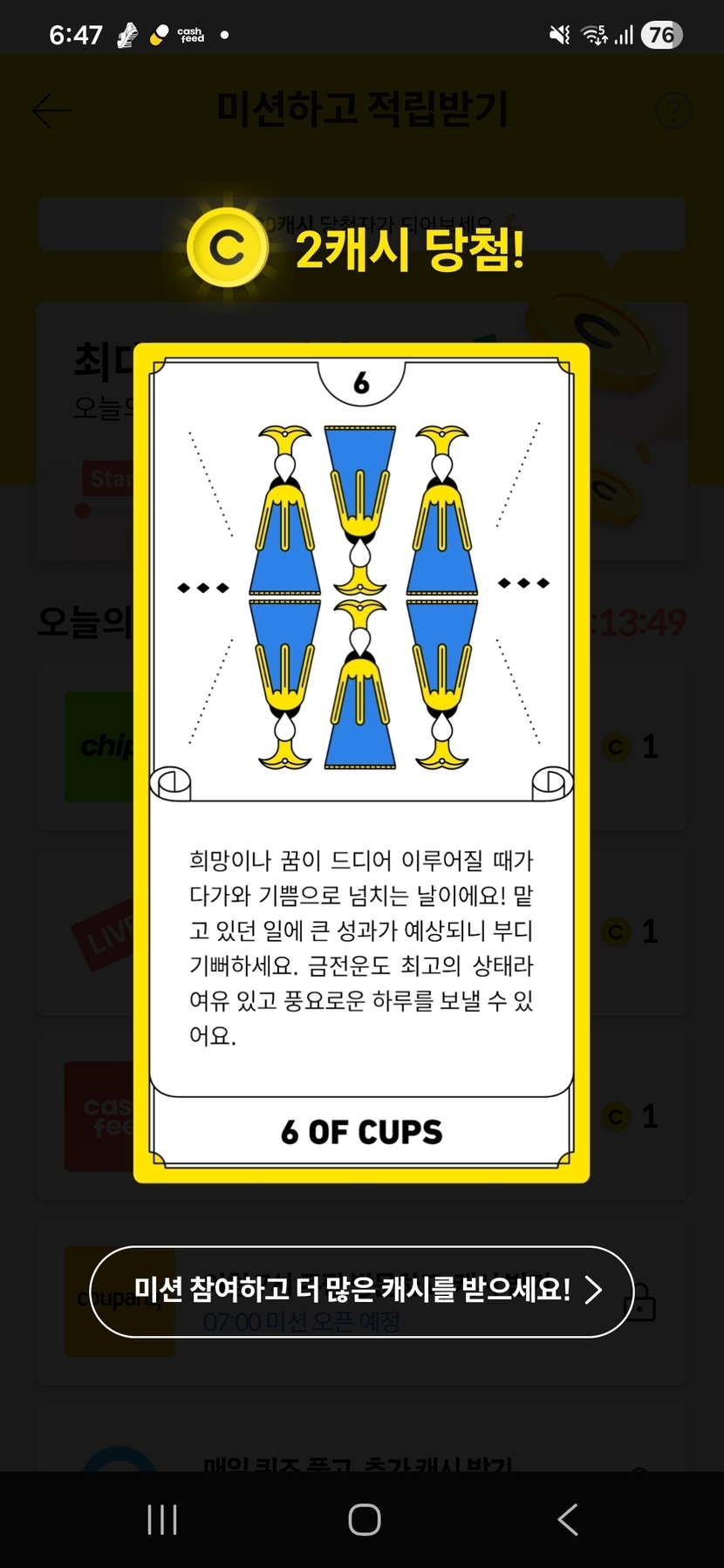 캐시슬라이드 오늘의 미션타로