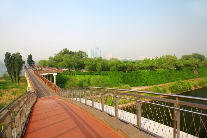 한강 물줄기 위에 잔잔히 떠 있는 선유도는 본래 빼어난 풍광으로 많은 예술가의 사랑을 받던 섬이었다. 일제강점기를 거치며 옛 모습은 희미해졌고, 1978년부터 22년 동안 서울 서남부 지역에 수돗물을 공급하는 정수장으로 기능했다. 기계 소리와 차가운 콘크리트가 가득하던 이곳은 2002년 4월 국내 최초의 환경재생 생태공원으로 탈바꿈하며 시민들의 품으로 돌아왔다. 과거의 구조물을 허무는 대신 그 흔적 위에 자연을 덧입힌 시도는 이곳을 서울에서도 독특한 분위기를 지닌 공간으로 만들었다.섬으로 향하는 길목인 선유교는 그 자체로도 조형미가 돋보인다. 한강의 풍경을 한눈에 담을 수 있도록 완만한 곡선으로 설계된 이 다리는 한강을 대표하는 보행 전용 교량으로 꼽힌다. 469m에 달하는 다리 위를 걷다 보면 발밑으로 흐르는 한강의 물결과 머리 위로 펼쳐진 넓은 하늘이 시원한 개방감을 준다. 특히 해 질 녘 선유교 위에서 바라보는 서울의 전경은 인상적이다. 붉게 물드는 노을과 하나둘 불을 밝히는 도시의 야경은 화려함과는 다른 고요한 분위기를 전한다. 밤이면 무지개 조명이 켜지는 다리의 모습도 한강의 운치를 더한다.공원 안으로 들어서면 과거 정수장의 흔적이 자연과 어떻게 조화를 이루는지 한눈에 확인할 수 있다. 가장 인상적인 공간으로 꼽히는 ‘녹색기둥의 정원’은 정수지의 지붕을 걷어내고 남겨진 콘크리트 기둥을 담쟁이덩굴이 감싸며 만들어진 공간이다. 질서 있게 늘어선 기둥 사이를 걷다 보면 신전의 회랑을 떠올리게 하는 분위기를 느끼게 된다. 수질정화원에서는 과거 약품침전지였던 공간에서 자라는 수생식물들이 물을 정화하는 과정을 살펴볼 수 있다.송수 펌프실을 개조해 만든 이야기관은 선유도와 한강의 역사를 담은 전시 공간이다. 세월의 흔적을 간직한 건물 안에서는 과거와 현재가 교차하는 지점을 마주할 수 있다. 농축조와 조정조를 재활용한 네 개의 원형 공간은 이제 어린이 놀이터와 환경 교실로 활용되며 활기를 더하고 있다. 거친 콘크리트 벽면과 대비되는 푸른 잎사귀는 과거 산업화의 상징이던 장소가 어떻게 치유의 공간으로 거듭났는지를 보여준다.