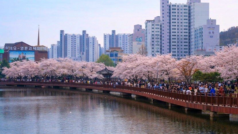 광주 운천저수지 5년 만에 개방, 벚꽃 명소 산책로