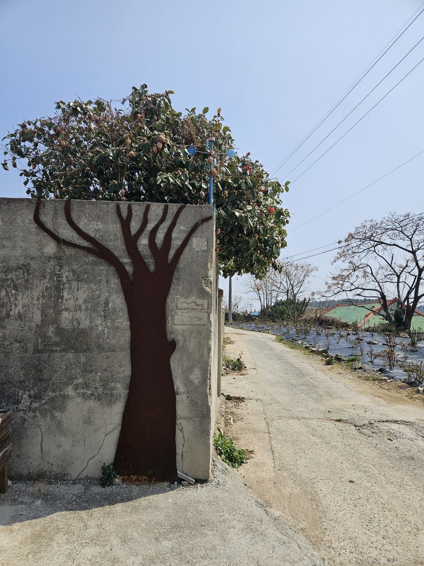 벽에 붙은 동백꽃(답방갑니다)