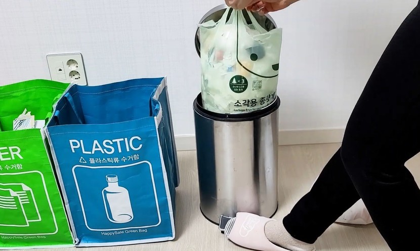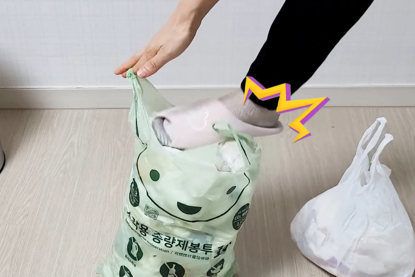 여기서 한 단계 더 효율을 높이는 방법도 있다. 부피가 큰 쓰레기는 미리 접거나 찢어서 넣는 것이다. 예를 들어 페트병은 뚜껑을 닫은 상태에서 한 번 눌러 공기를 뺀 뒤 넣고, 종이 상자는 납작하게 접어 넣으면 초기 부피 자체를 줄일 수 있다. 이후 구멍을 활용한 압축을 하면 공간 활용도가 더욱 높아진다.
