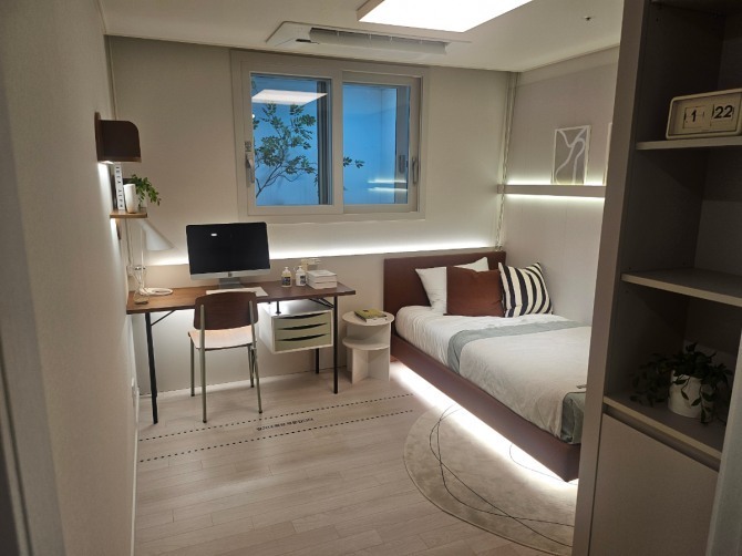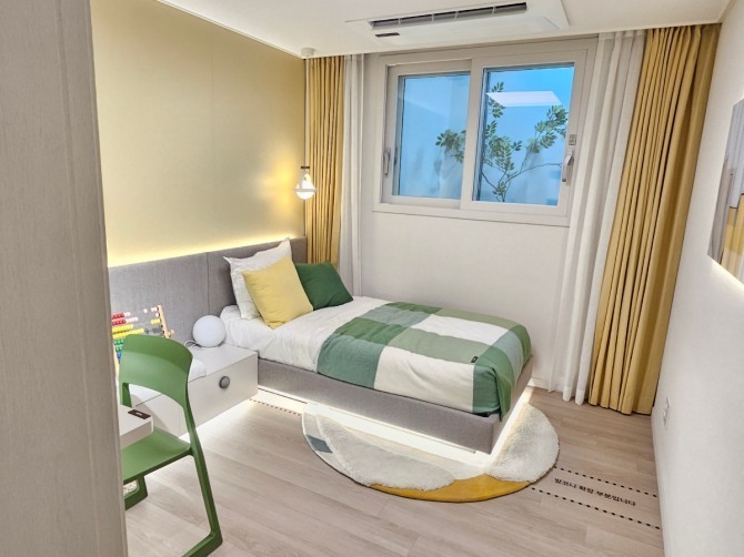 가격 측면에서는 '비싸지만 비교 가능한 수준'이라는 반응이 주를 이뤘다. 평균 분양가는 3.3㎡당 약 5400만원으로, 전용 59㎡ 기준 최고 14억원대다. 인근 준공 단지 시세와 비교하면 일정 수준의 가격 경쟁력은 있지만, 절대적인 가격 부담은 여전히 크다는 평가다.84A㎡타입 작은 침실 전경./한국금융신문 조범형 기자실제 인근 '신길 센트럴자이' 전용 59㎡가 17억원대에 거래되고, '래미안 에스티움' 84㎡ 역시 19억원대를 형성하고 있는 점은 수요자 판단의 중요한 기준으로 작용하고 있다. 새 아파트 프리미엄을 감안하면 현재 분양가가 기존 시세 대비 상당히 낮은 수준이라는 시각도 존재한다.