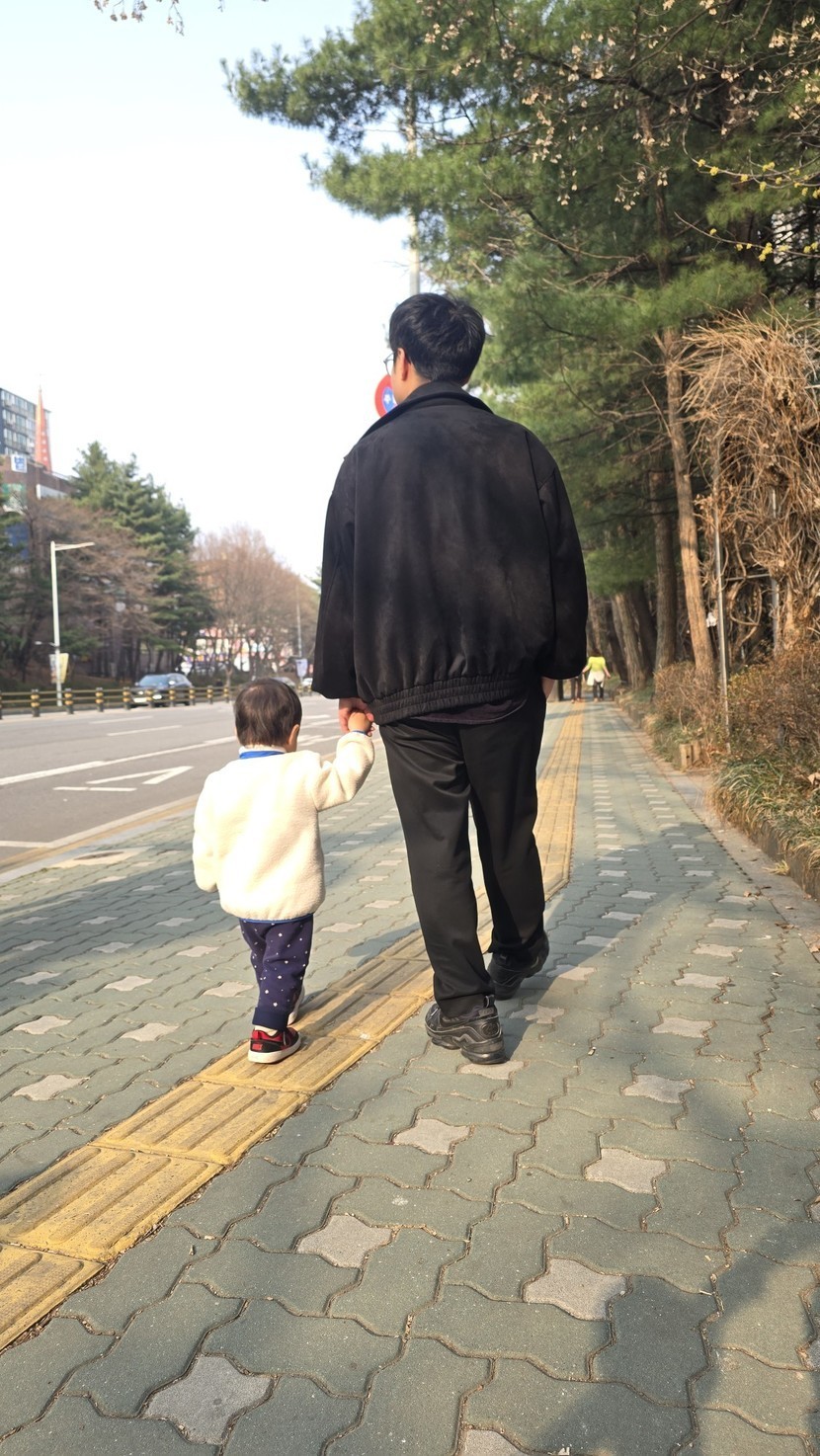 아들과 손잡고