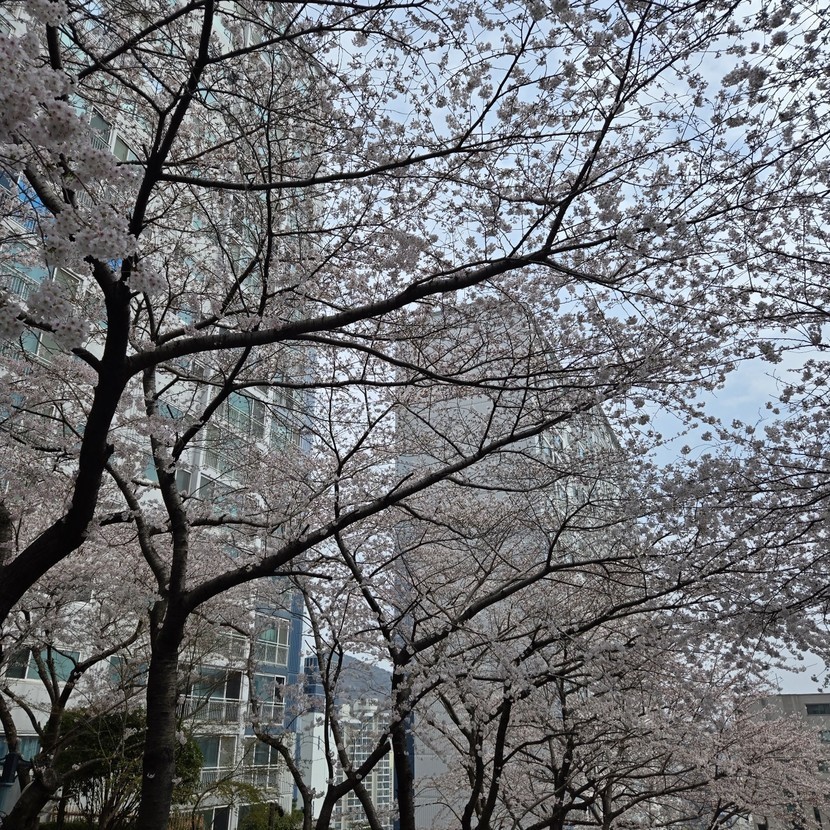 밤새 활짝 핀 벗꽃